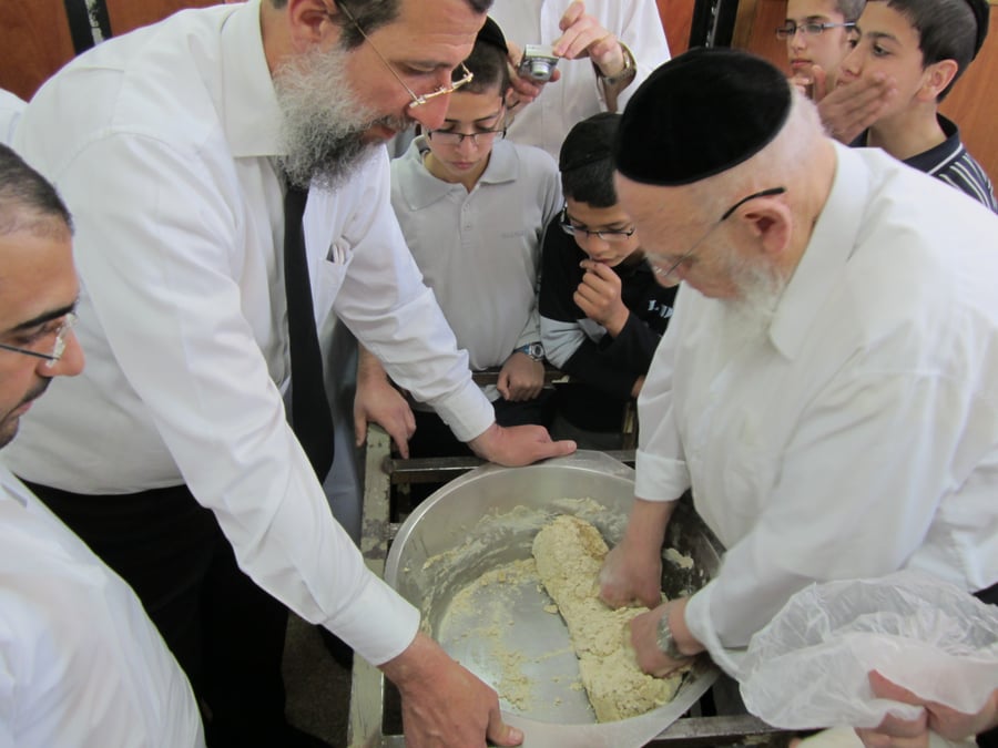 נשיא מועצת חכמי התורה הגאון רבי שלום כהן מקפיד שיהיה קמח שנטחן ביד וכן על שאיבת מים ממי מעיין עבור אפיית המצות • צפו בתיעוד מיוחד של הגר"ש כהן בלישת הבצק (חג הפסח)