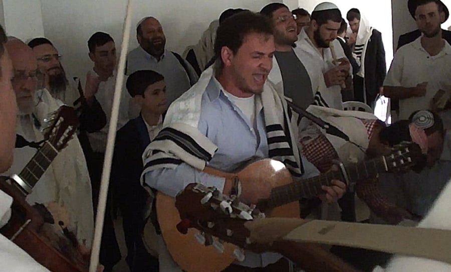 קולות הכינור בוקעים מתוך הקהל הגדול ששר בדבקות ומהדהדים בלובי הגדול.