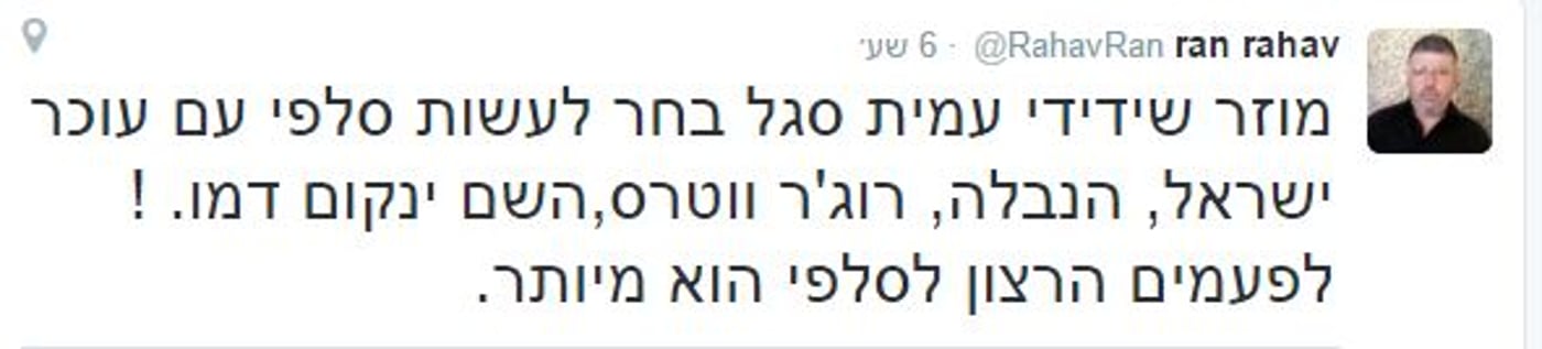 הכל החל בסלפי שהעלה אמש לרשתות החברתיות הכתב הפוליטי של חדשות 2 עמית סגל, יחד עם אחד מגדולי האנטישמים רוג'ר ווטרס, למי שלא יודע, מדובר בסולן להקת פינק פלויד לשעבר, שהיום נחשב לאחד ממובילי החרם וקמפיין ה-BDS נגד ישראל.