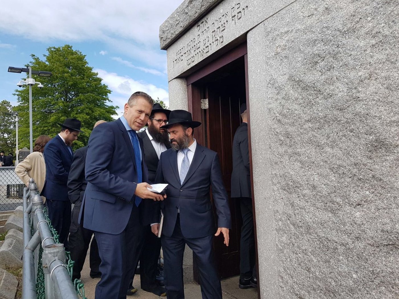 את פניו קיבלו מארחו, יו"ר 'כולל חב"ד' הרב שלום דוכמן וידידו העסקן החב"די ר' לוי אדרעי שהניחו עמו תפילין בטרם כניסתו לציון. לצידם נכח גם איש משטרת ניו יורק הרב שלמה ריזל שהעניק לשר לביטחון פנים דולר מהרבי מליובאוויטש.