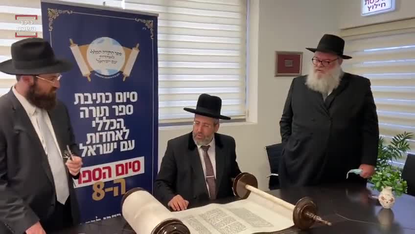 ההכנות לקראת סיום כתיבת ספר התורה השמיני בהוראת הרבי מליובאוויטש - הפעם בעיר ירושלים: שורה ארוכה של רבנים ואישי ציבור כבר כתבו אותיות, והפעם הצטרפו אליהם מעיר הקודש והמקדש.