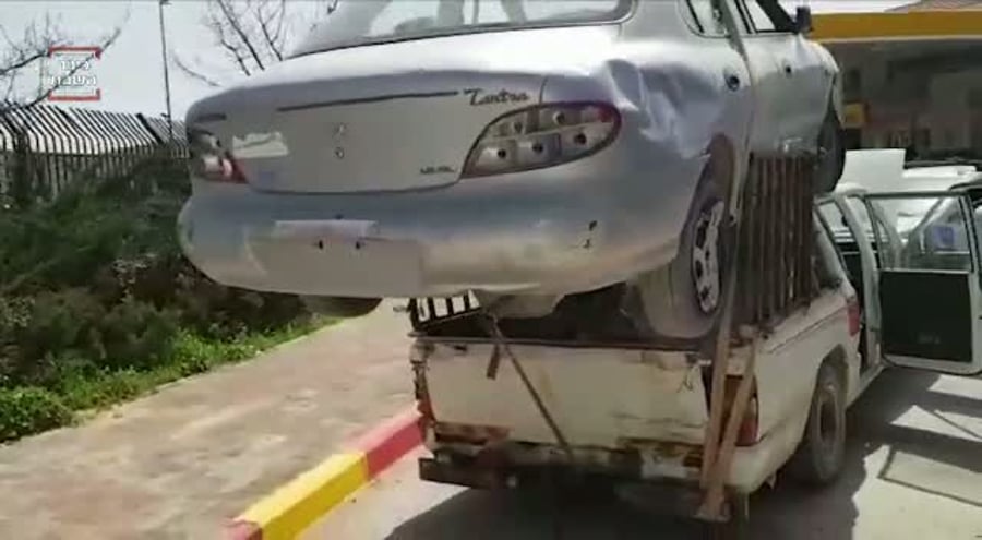 במהלך פעילות אכיפה שביצע המשטרה אמש (ראשון) בכביש 60, באזור צומת הכבשים, הבחינו השוטרים ברכב טנדר מיצובישי, שמוביל על הארגז וגג הרכב, רכב נוסף מסוג יונדאי.