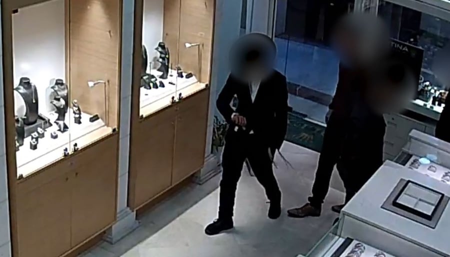 ביום השוד, שעות ספורות קודם לכן, הגיע החשוד ביחד עם אחר לחנות, כשהוא לבוש כחרדי, והתעניין בשעון מסוים. זמן קצר אחריו נכנס החשוד השני לחנות אך משהבחין כי דלת החנות לא נפתחה, סימן בראשו לשלילה לחשוד והשניים עזבו את המקום.