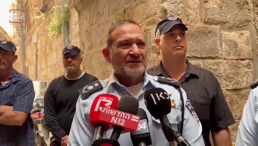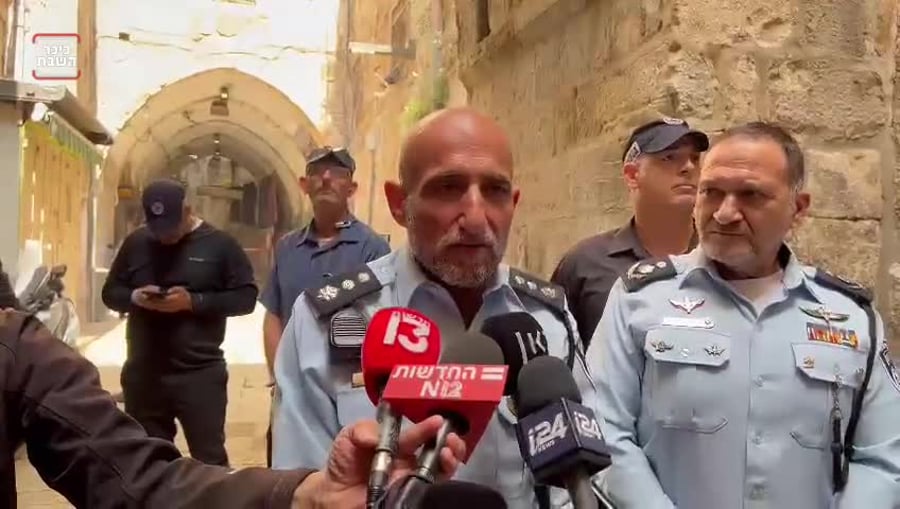 הפיגוע בירושלים: מפקד מרחב דוד אבי כהן - האחראי על זירת הפיגוע, הגיע יחד עם מפכ"ל המשטרה יעקב שבתאי, לזירה היכן שהתרחש היום (חמישי) הפיגוע בעיר העתיקה.