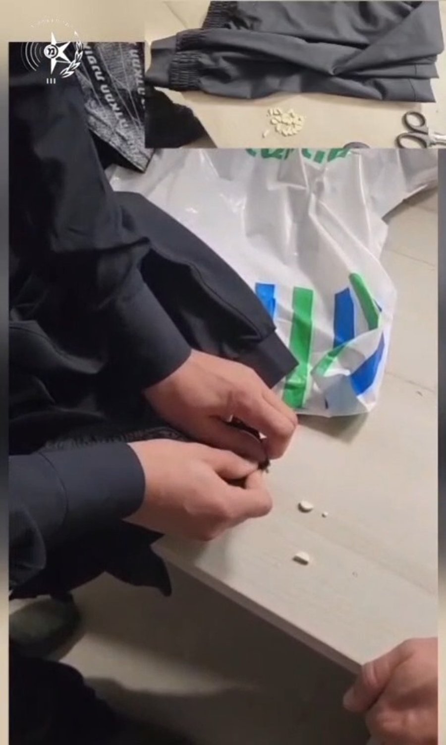 הסמים נמצאו בתוך מכנס תמים שהביא עמו הצעיר. הוא אמר לשוטרים שיש לו בגדים להעביר לחבר שלו. בזכות ערנות השוטרים - ההברחה סוכלה. צפו בתיעוד מרגעי תפיסת הסמים על ידי השוטרים.