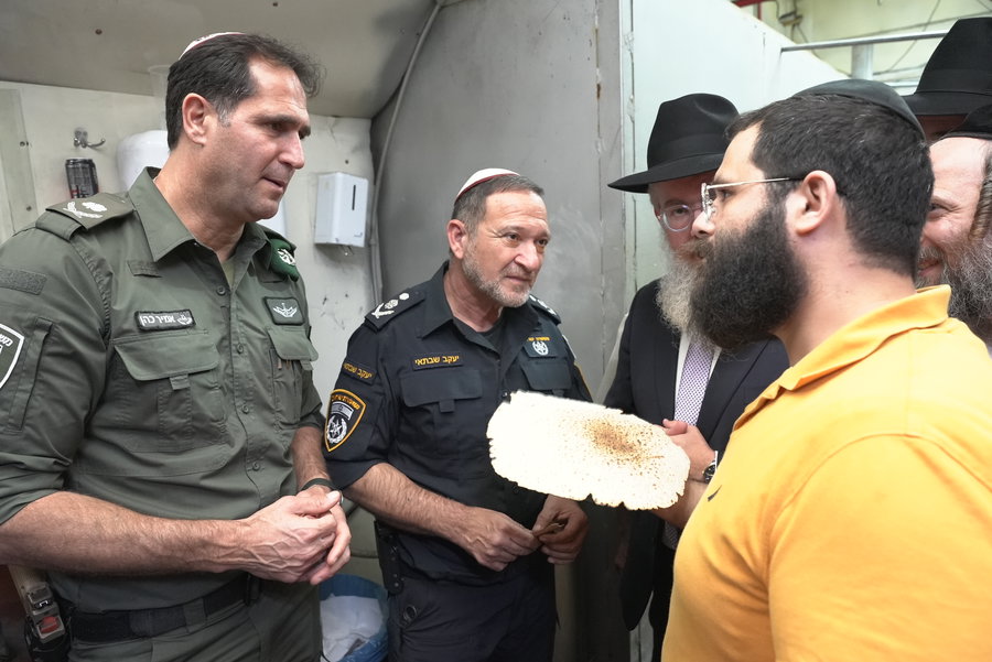 מפכ"ל המשטרה רב-ניצב יעקב שבתאי, הגיע היום (שלישי) לביקור במאפיית המצות בכפר חב"ד, שם אפה מצות לרגל חג הפסח.