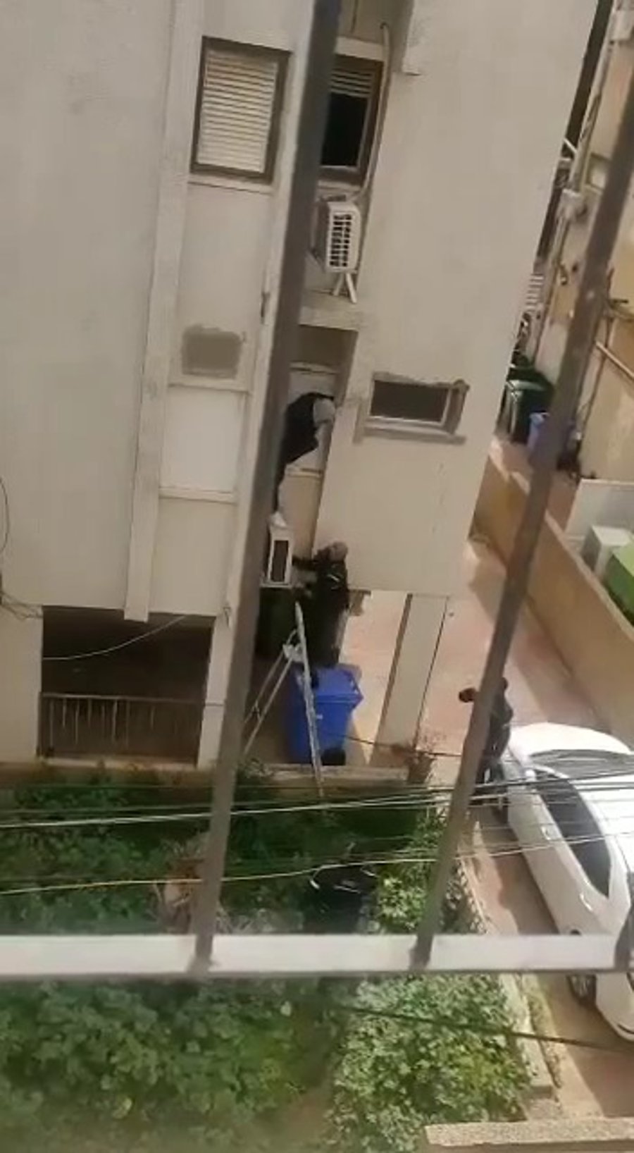 הנאשם יצא מהחלון וכשביקשו השוטרים שירד ואף הניחו עבורו סולם, סרב לרדת, עמד על מזגן וקפץ ממנו לבסוף כשניסה להימלט. בתוך כך, נפל המזגן לעבר השוטרים שניסו לעוצרו.