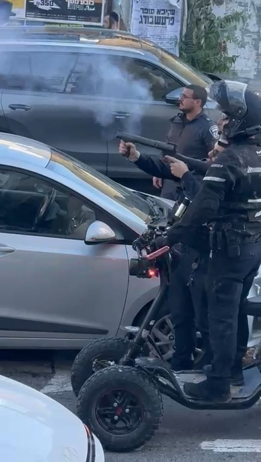 בתיעוד שהגיע לידי 'כיכר השבת' נראה שוטר ממרחק קצר מהאדם שתיעד את האירוע, בעוד הוא מחזיק בידו רימון הלם, ולאחר שניות משליך אותו לקרקע לא הרחק מחרדים שעמדו במקום.