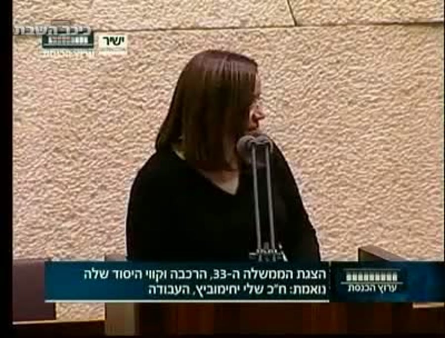 ח"כ שלי יחימוביץ, מי שתנהיג את האופוזיציה בה יהיו המפלגות החרדיות, פתחה במתקפה על שלישיית ההנהגת הממשלה בנימין נתניהו, יאיר לפיד ונפתלי בנט שהדירו את החרדים ממשלתם: "זו ממשלת הדרה ולא ממשלת אחדות".