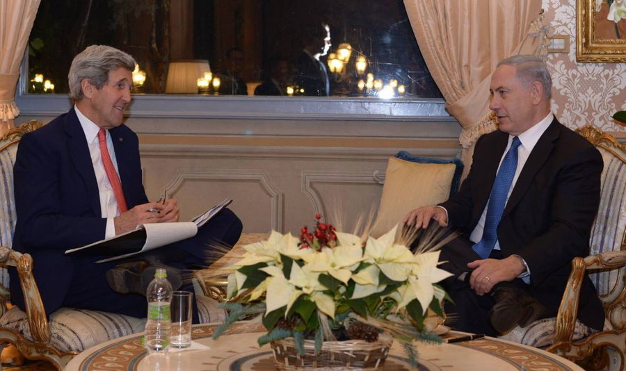 על רקע האיום הפלסטיני בהליכה למועצת הביטחון של האו"ם למהלך חד-צדדי להכרה במדינה פלסטינית, ראש הממשלה בנימין נתניהו נועד הערב (שני) עם מזכיר המדינה האמריקני ג'ון קרי והצהיר כי ישראל תתנגד לכפיית תנאים.