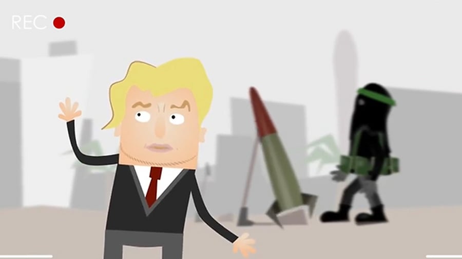 בסרטון, נראה כתב זר שמדווח מעזה ומספר כי "אנו כאן במרכז עזה, וכמו שאתם רואים אנשים מנסים לחיות חיים שקטים. אין כאן טרוריסטים, רק אנשים רגילים", אלא שמאחוריו נראה מחבל משגר רקטה ומאחורוי פוסעת אשה עם רעלה עם בנה התינוק.