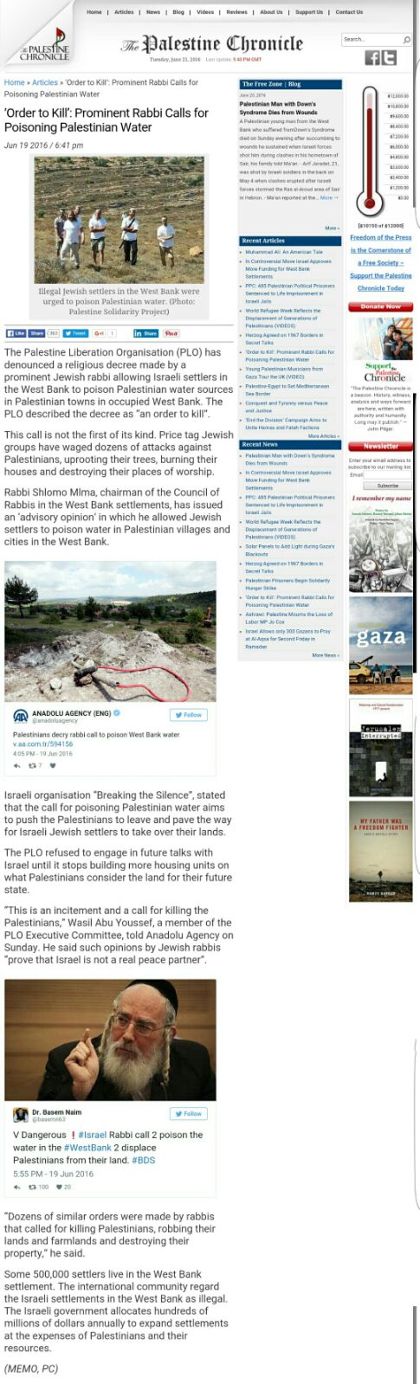 אמש (שני) התחוללה דרמה קטנה סביב ח"כ ישראל אייכלר וזאת לאחר ששר הבריאות לשעבר בממשלת חמאס, ד"ר באסעם נעים, העלה ציוץ בטוויטר בו קבע כי ישראל מרעילה במזיד את מי השתיה המגיעים לפלסטינים וזאת בהוראת הרבנים, כך על פי שר הבריאות לשעבר.