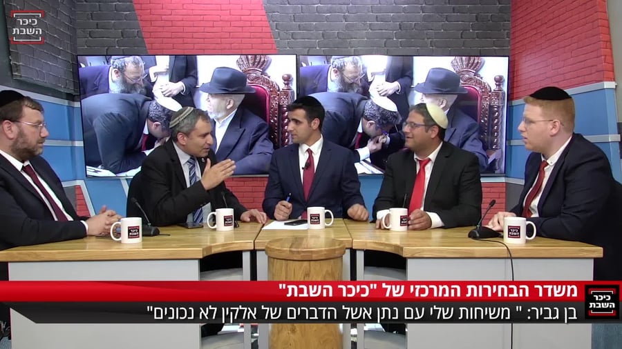במהלך משדר הבחירות הלילה (שני) באולפן 'כיכר השבת', לילה לפני פתיחת הקלפיות, התעמתו ביניהם השר זאב אלקין מהליכוד עם עו"ד איתמר בן גביר מעוצמה יהודית.