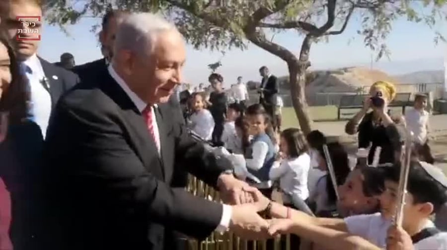 ראש הממשלה בנימין נתניהו הגיע היום (חמישי) ליישוב מצפה יריחו, שם נערך לכבודו קבלת פנים בהשתתפות הילדים, שלחצו יד לנתניהו.