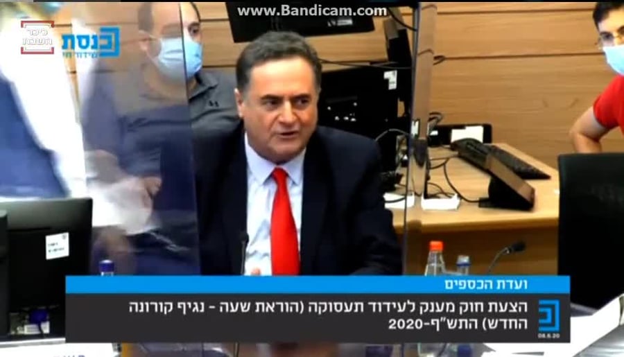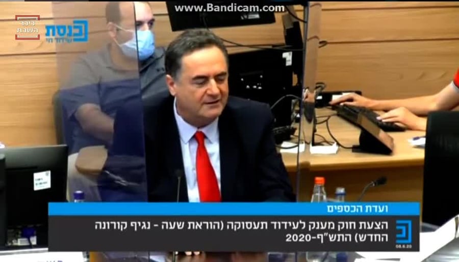 מדובר בחוק הוראת שעה להענקת מענקים לעסקים שנפגעו בשל הקורונה. במהלך הדיון התפתח עימות סוער בין חברי הכנסת לשר האוצר, כאשר כץ הודיע כי הוא מתנגד לשינויים מהותיים שהעלו חברי הוועדה: "אני מעדיף עם השינויים שהועלו בפני, שהחוק לא יעבור, אני לא מוכן להוריד את שכר המינימלי שנקבע, גם ככה הוא נמוך מאוד. הורדה מתחת לזה תגרום למניפולציות, ולהורדת שכר מצד מעסיקים.