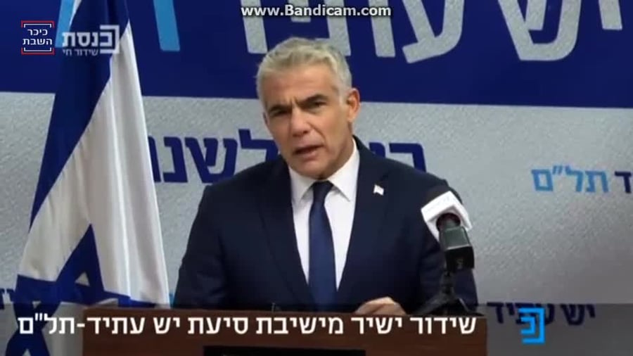 לפיד תקף אף את שותפיו מהעבר הלא רחוק ואמר: "אנחנו שמים השבוע על שולחן הכנסת את הצעת החוק שאומרת שאדם שיש לו כתבי אישום אינו יכול לכהן כראש ממשלה. אני חתום על הצעת החוק הזו, אבל לא כתבתי אותה לבד. כתבתי אותה יחד עם בני גנץ וגבי אשכנזי".
