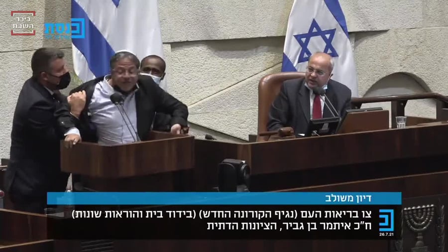 בתגובה, הורה חבר הכנסת טיבי להוריד את ח"כ בן גביר מהדוכן ולהרחיקו מהמליאה. כשאנשי משמר הכנסת הורידו את ח"כ בן גביר מהדוכן, צעקו חברות הכנסת גולן וברק כי הם נוגים בח"כ בן גביר באלימות.