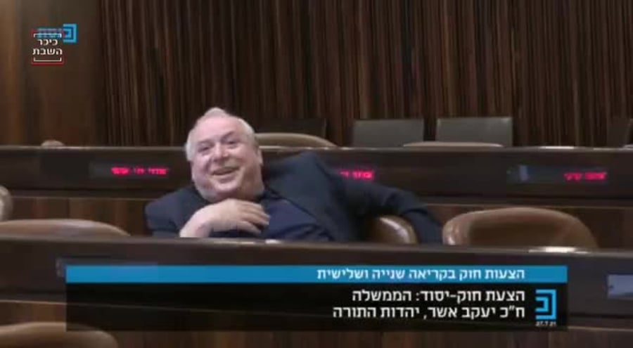 בעיצומו של הפיליבסטר הלילי פצח ח"כ יעקב אשר בשיעור גמרא ליו"ר הישיבה מנסור עבאס: "הגמרא אומרת: בארמית", כך אשר לעבאס, "שקושטא קאי, שקרא לא קאי".