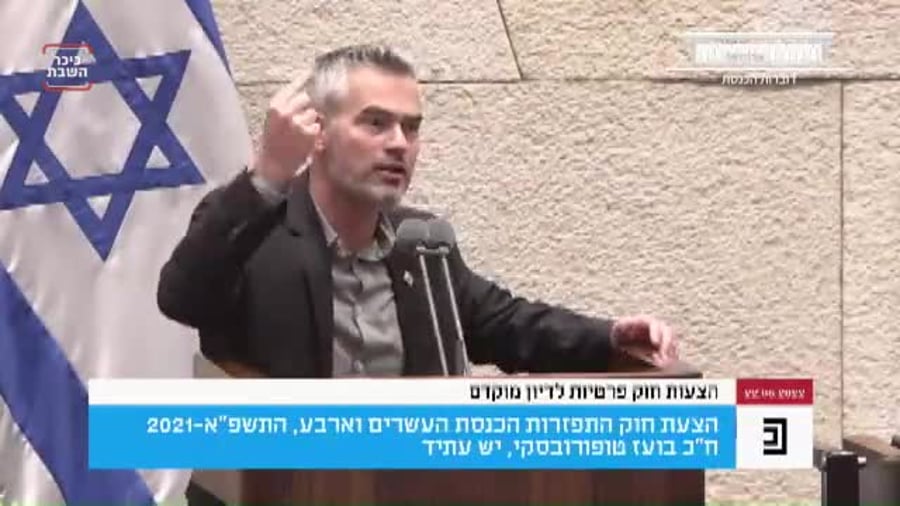 עוד הוסיף טופורובסקי: "ראש הממשלה הודיע שכאשר במאזן הסיכונים מול הסיכויים טובת המדינה נמצאת באיזשהו סיכון אל מול טובתו הפוליטית – טובת המדינה תנצח. נפתלי בנט הראה שאפשר לעשות פוליטיקה אחרת. יכולים להיות יחסי אמון בין אנשים בפוליטיקה שיכולים לכבד הבטחה והסכם חתום. האופוזיציה עדיין מעכבת את ההחלטה ללכת לבחירות, זו אופוזיציה שהתאהבה בלתקוע את המערכת השלטונית. אם האופוזיציה רוצה, יש תאריך מוסכם כבר היום, אבל האופוזיציה מעמידה תנאים מושחתים בשביל להגיע לתאריך מוסכם."