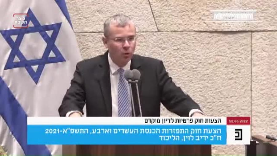 ח"כ יריב לוין, שנאם קודם ההצבעה אמר: "שהחיינו וקיימנו והגיענו לזמן הזה. לפני כשנה הושבעה בכנסת הממשלה הגרועה בתולדות ישראל, ממשלה שקמה על בסיס שנאה עיוורת ומעילה חסרת תקדים באמון הבוחרים. נכנסתם למשרדיכם אחרי שהשארנו לכם מדינה משגשגת, בנימין נתניהו כראש ממשלה הוביל את המדינה להישגים אדירים ובהם כלכלה עוצמתית הסכמי שלום פורצי דרך והפיכת ישראל למעצמת אנרגיה עולמית. עבורכם, כמה פוליטיקאים קטנים שהקנאה העבירה אתכם על דעתכם, זה היה קשה מדי. חברתם לפוליטיקאים קטנים לא פחות שתאוות הכיסא והשררה הניע אותם לוותר על כל ערך אידאולוגי ולרמוס כל התחייבות לבוחר".