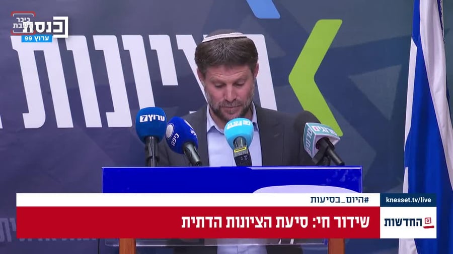 שר האוצר בצלאל סמוטריץ', נאם היום (שני) בישיבת הסיעה של 'הציונות הדתית' על האתגרים המונחים לפתחו במשרד האוצר ובמשרד הביטחון. סמוטריץ' התייחס למשבר הכלכלי וליוקר המחיה וטען כי מדובר במשבר עולמי: "העולם נמצא כעת במשבר כלכלי עמוק המתבטא בזינוק מחירים ובעלייה חדה באינפלציה".