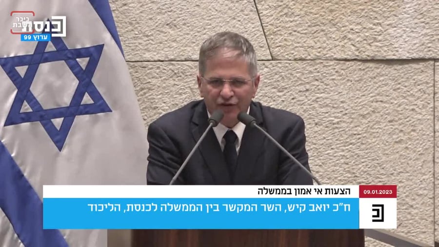 מליאת הכנסת דחתה ברוב גדול את הצעות אי האמון שהגישו סיעות האופוזיציה - יש עתיד, המחנה הממלכתי וישראל ביתנו; השר יואב קיש קידם בברכה את לפיד ששב מפריז (חדשות)