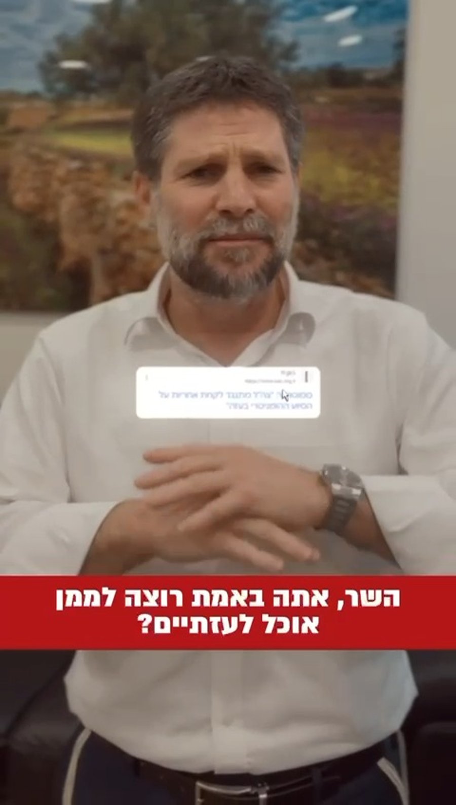 בתגובה לפניית עיתונאים בזמנו, הכחישו סמוטריץ' ובכירים באוצר כי מדובר במימון פעילות הומניטרית. אלא שכעת, במסגרת תדרוך לעיתונאים, השר מאשר בגלוי כי הוא עצמו פועל להקצות תקציב ייעודי לטובת ניהול הסיוע ההומניטרי – ואף רואה בכך מהלך אסטרטגי קריטי.