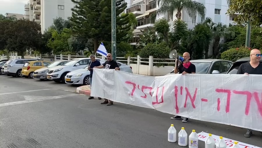 מתנגדי רפורמה המשפט הקימו הבוקר (שלישי) מייצג עם בקבוקי אקונומיקה מול ביתו של יאיר לפיד בתל אביב, במחאה על "הלבנת הדיקטטורה בה תומך לפיד".