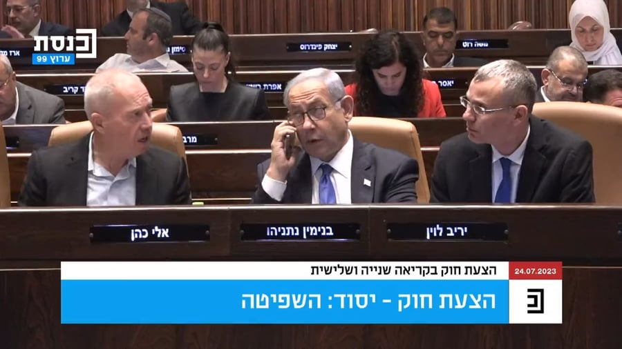 15:36: למרות החששות, שר הביטחון יואב גלנט שניסה להוביל ריכוך לחוק, הצביע בעד ביטול עילת הסבירות.