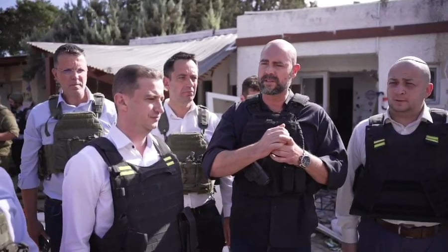 בבסיס צריפין, שם הוצגו לאורחים חלק מאמצעי הלחימה האכזריים ששימשו את החמאס במתקפה, צפו יושבי הראש וחברי המשלחת בסרטון הזוועות של דובר צה"ל.