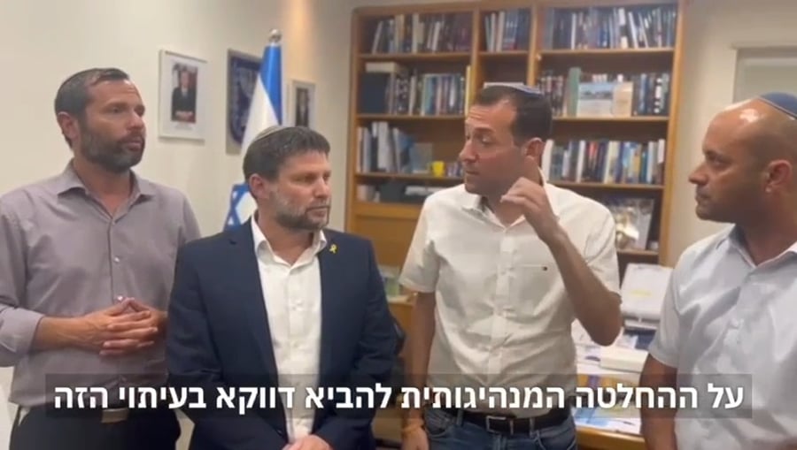 חבר הקבינט המדיני בטחוני בצלאל סמוטריץ׳: "לאחר שבועות של דיונים, ממשלת ישראל מקדמת תגובה הולמת לצעדים האנטי ישראלים בהובלת הרשות הפלסטינית".