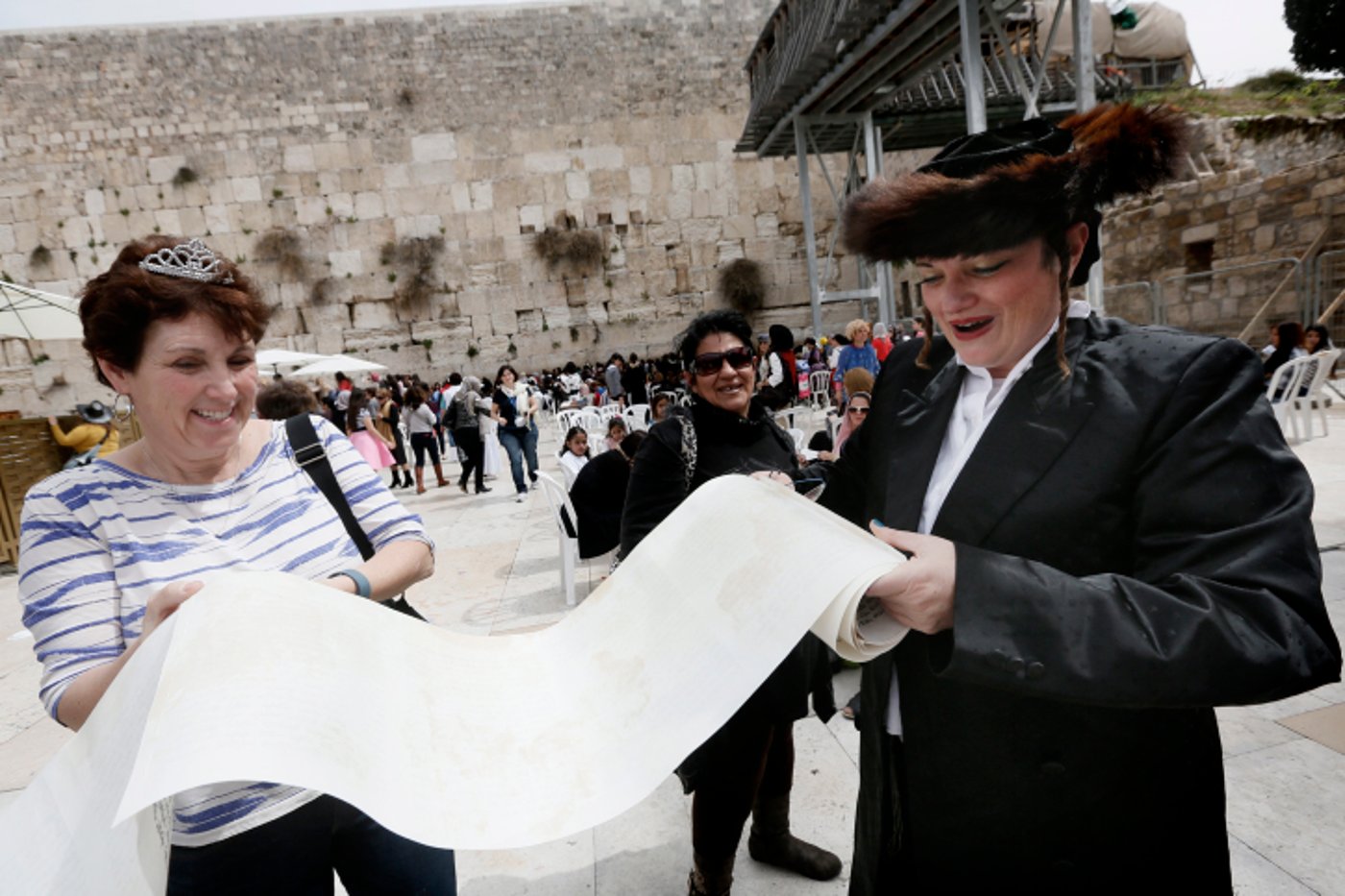 בצל חגיגות שושן פורים ברחובות עיר הקודש ירושלים, מגיעים המונים לפקוד את שריד בית מקדשנו הכותל המערבי, לתפילה וקריאת המגילה • שלל תחפושות הציפו את הרחבה כמו גם קבוצה פרובוקטיבית שביקשה לחלל את המקום הקדוש לעם היהודי • צפו בגלריית תמונות (חגים, פורים)