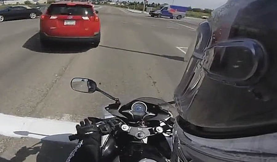 אלא שאז היא פשוט עלתה על אופנוע שעמד ברמזור. רוכב האופנוע, שתיעד את האירוע המצלמת הקסדה שלו, הצליח ברגע האחרון לרדת מהאופנוע וכך ניצל. אם זה לא מספיק, התלמידה המשיכה לנסוע אחורה ועלתה על האופנוע.