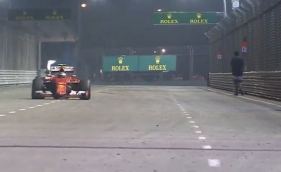 מה עבר על הבן אדם הזה? במהלך ההקפה ה-40 בסבב מירוצי הפורמולה 1 בגראנד פרי של סינגפור התפרץ אלמוני אל מסלול המירוצים והיווה סכנה מוחשית לעצמו ולנהגים.