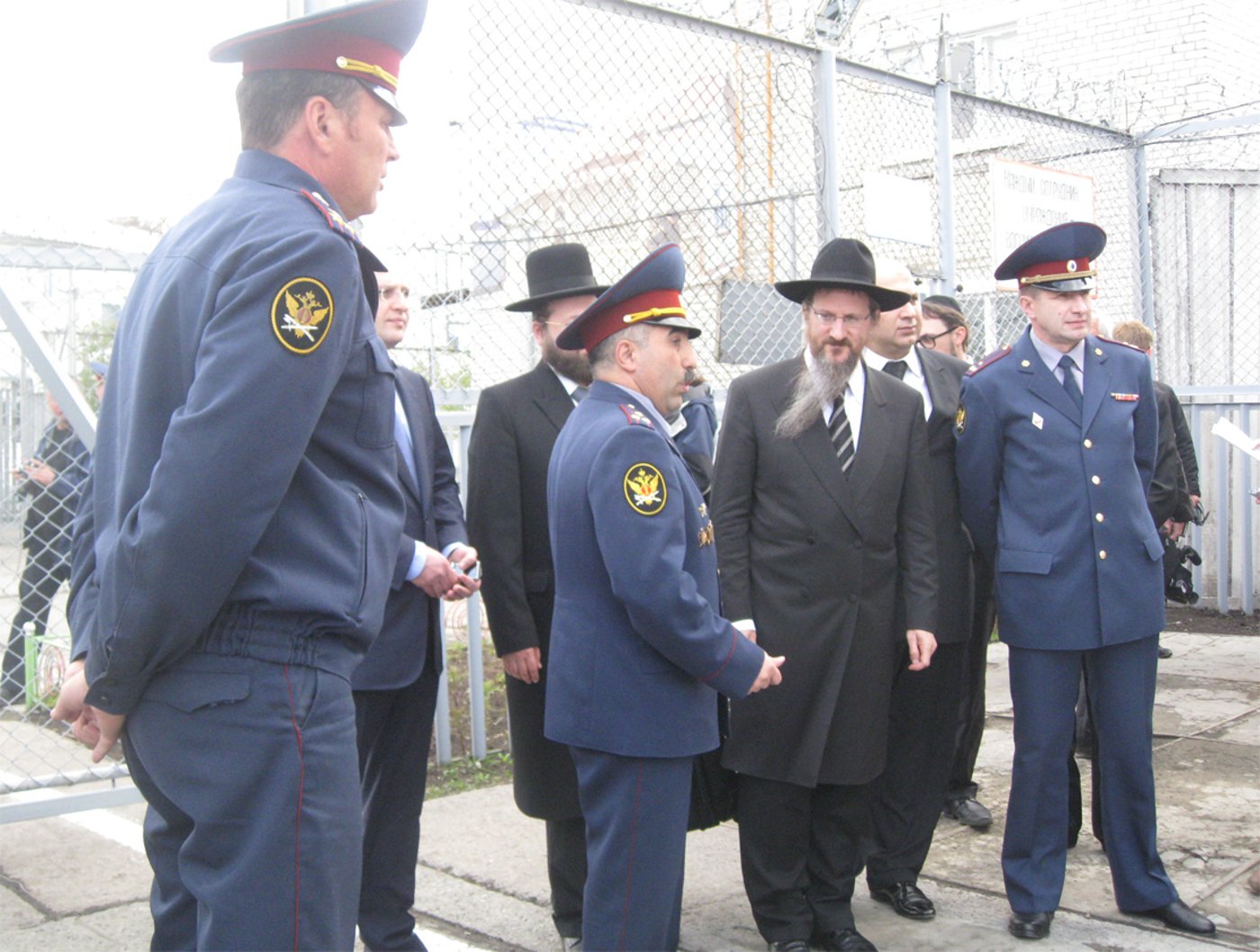 משם פנתה משלחתו של הרב הראשי, מלווה בהרב אהרן גורביץ, המשמש כרב הצבאי של צבא רוסיה, אל עבר הכלא הענק השוכן באזור, בו כלואים גם 14 יהודים, בין אלפי האסירים.