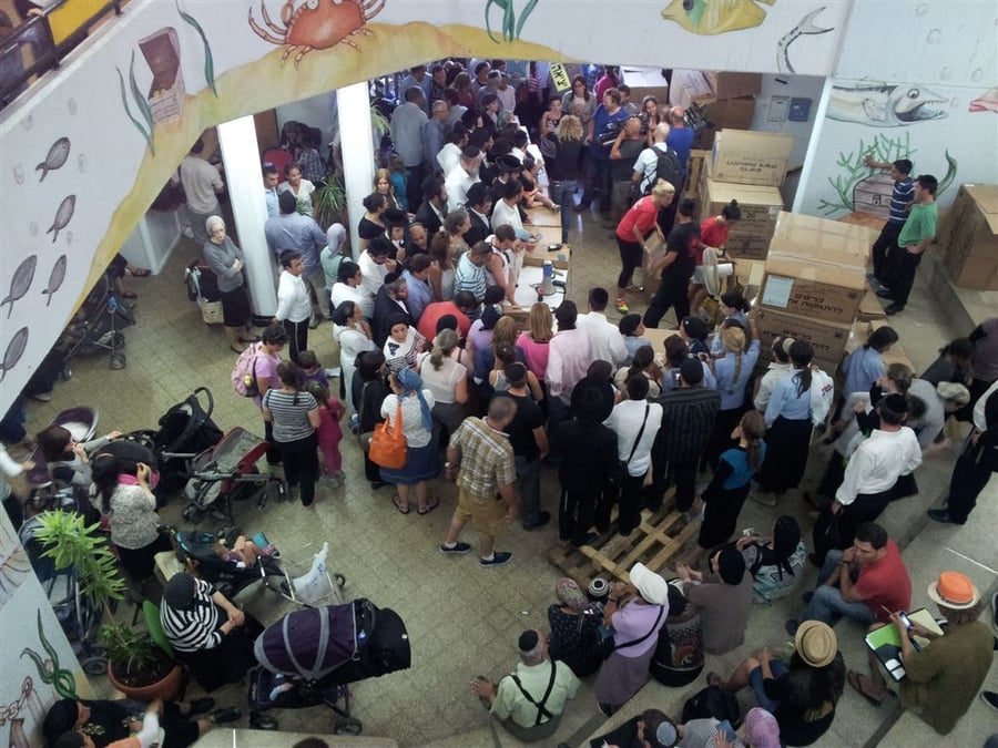 אזרחים מצטיידים בערכות מגן, לפני מספר חודשים (צילום: יעקב אריה)