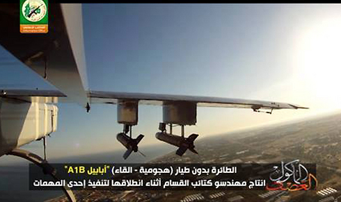 מבצע צוק איתן - היום השביעי: ערוץ הטלוויזיה של חמאס שידר הצהריים (שני) תמונות ראשונות שלטענתו צילם מזל"ט הארגון שחדר הבוקר לישראל והופל באשדוד על ידי חיל האוויר של צה"ל. בסרטון שפורסם נראים מעין טילים שהוצבו על כנפיו.