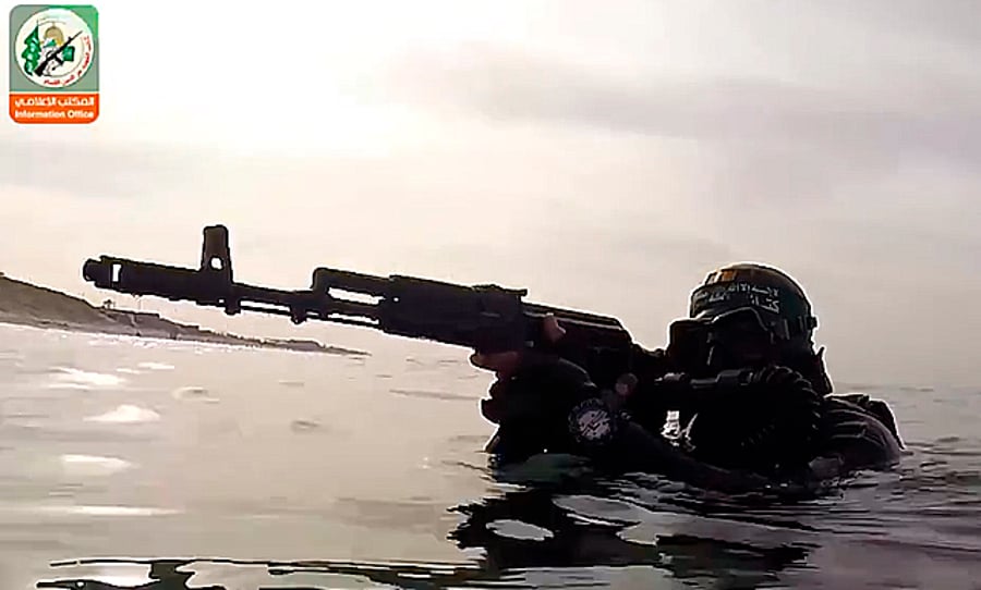 כחלק מחגיגות 27 שנים להיווסדו של ארגון הטרור חמאס, הזרוע הצבאית של הארגון מציגה סרטון וידאו של הקומנדו הימי שניסה לבצע פיגוע טרור במבצע "צוק איתן" (חדשות)