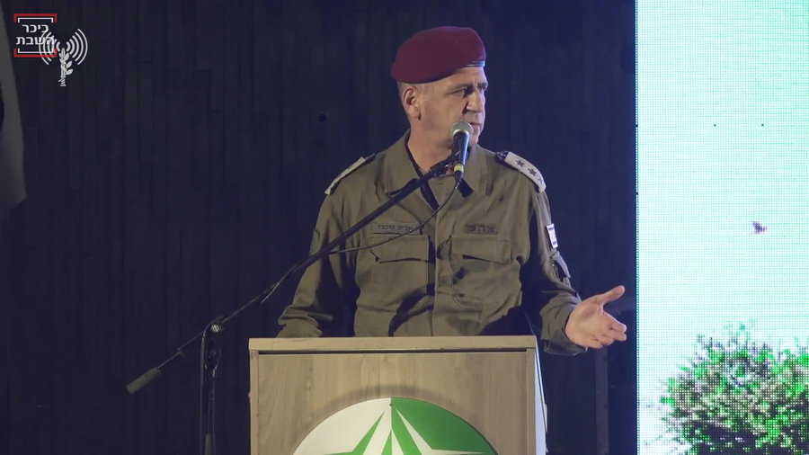 הרמטכ"ל אביב כוכבי: שנאם בטקס אמר "צה"ל עלה לנגב מזמן, האיץ את העלייה לנגב בעשור האחרון וימשיך לעלות לנגב ולהתרחב עוד".
