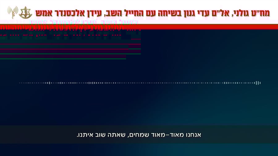 מפקד חטיבת גולני, אלוף-משנה עדי גנון שוחח אמש עם החייל השב, עידן אלכסנדר, ששוחרר ביום שני השבוע משבי חמאס. הערב (רביעי) פרסם דובר צה"ל הקלטה מהשיחה המרגשת.