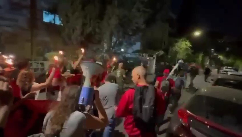 21:33: המשטרה עצרה את אחד המפגינים בצעדה לכיוון בית הנשיא בירושלים, שבה צועדים גם קרובי חטופים בקריאה להקדמת הבחירות ולשחרור יקיריהם