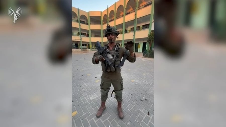 "אפשר לראות פה בית ספר, סמוך לבית הספר, מטען מתחת לפח שכבר היה מוכן", המשיך מג"ד 931, "בהמשך בתוך הבית ספר מתחם שהייה של חמאס, שרואים שהוא מתחם שהייה טרי שישנו בו, אפשר פה לראות את שני המטענים מוכנים לכוחותינו, מתחת לגרם המדרגות, ופה המחבלים שהו עם המים שלהם, ונסו על נפשם ברגע שהגענו לכאן".
