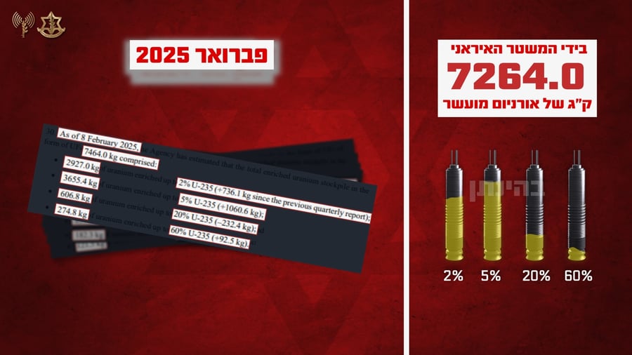 בנוסף, בשנים האחרונות וביתר שאת מתחילת המלחמה, זוהתה התקדמות ממשית של המשטר האיראני במאמציו לייצור מכלול נשק המתאים לפצצה גרעינית.