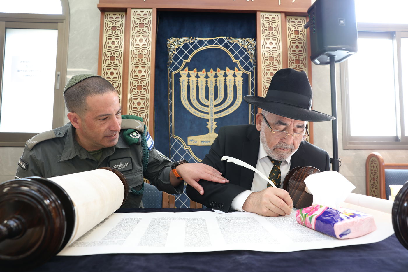 ר' רפאל זביחי מנכ"ל המוסדות מספר לנו: זכינו להכניס עשרות ספרי תורה מהודרים ביותר וזה ספר התורה ה-52 שאנו זוכים להכניס ליחידות צבאיות.