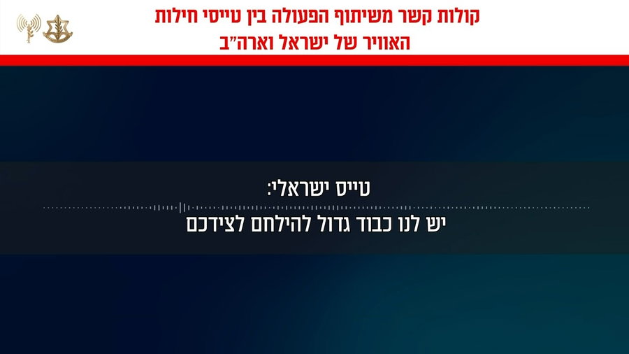 "יש לנו כבוד גדול להילחם לצידכם, אתם עושים עבודה מצוינת", נשמע הטייס הישראלי אומר באנגלית לעמיתו האמריקני.