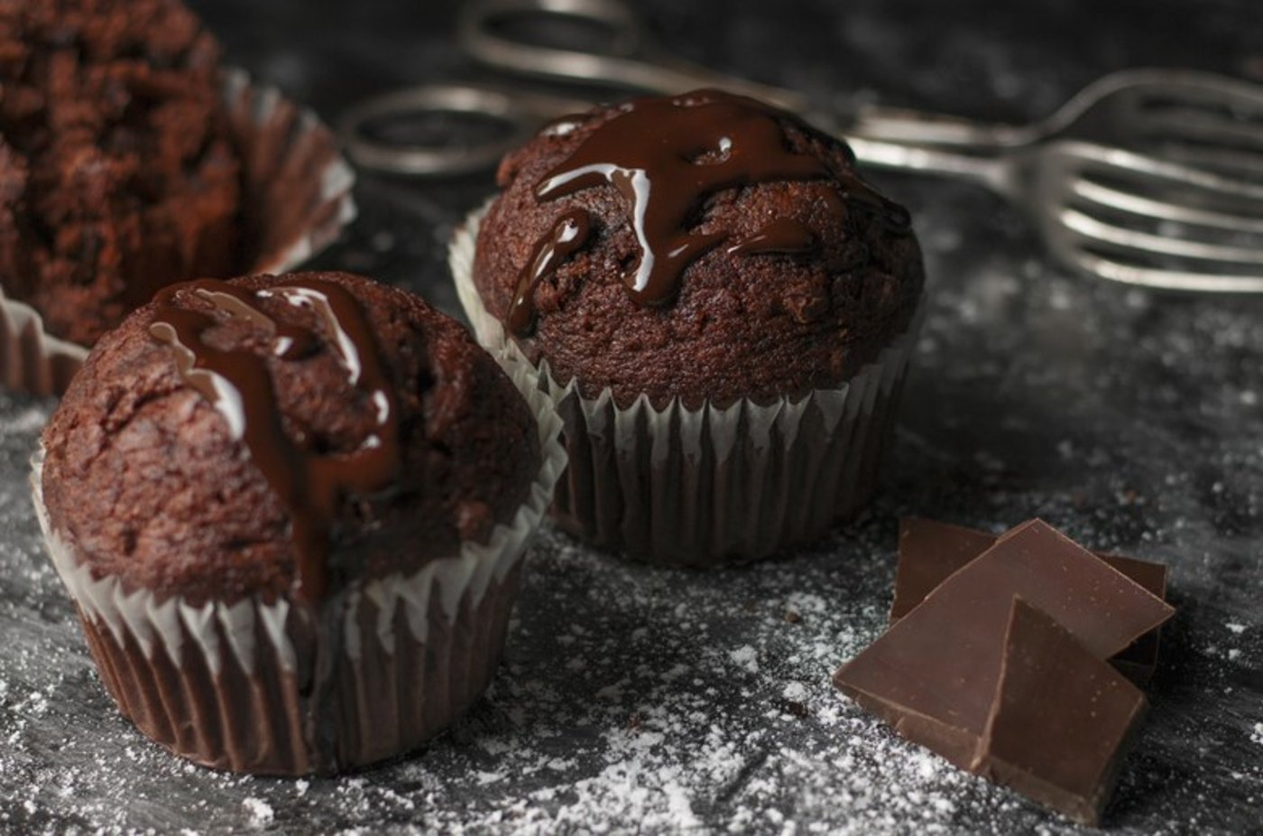 6. מוציאים את המאפינס מהתנור ולאחר שהם מצטננים מעט, טובלים את החלק העליון שלהם בגאנש ומפזרים מעל סוכריות או כל תוספת אהובה אחרת.