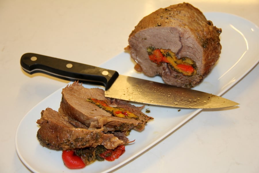 - מערבבים בקערה פלפלים, תרד ושום וממלאים בכיס הפילה.