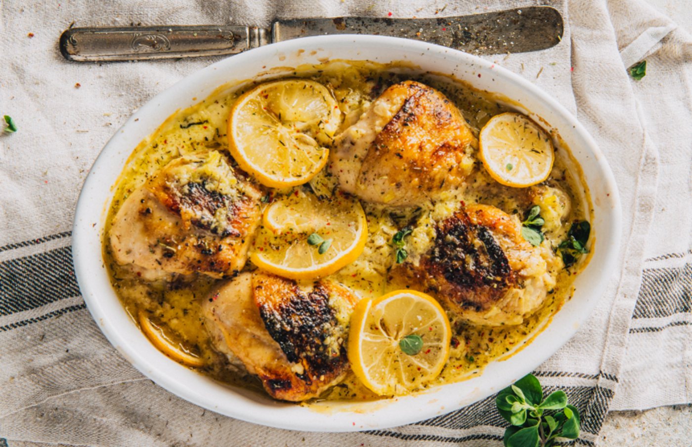 5. להגשה, מניחים את העוף והכרובית בקערה רדודה ויוצקים את הרוטב מהמחבת מעל; מקשטים בפרוסות לימון, אם רוצים.