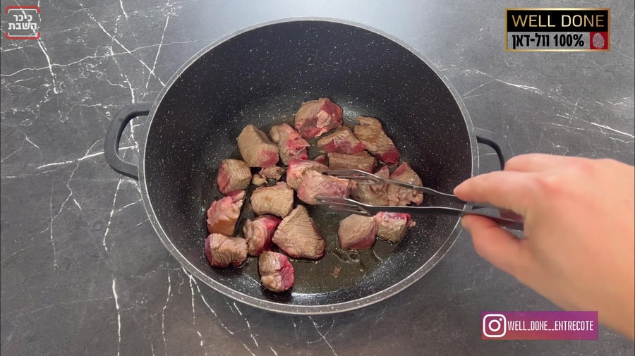 - 500-800 גרם בשר מס' 2 או כל נתח שמתאים לבישול ארוך מרשת קצביות 'וול דאן', חתוך לקוביות