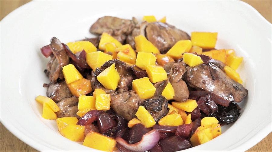 5. סמוך להגשת המנה, מוסיפים את קוביות המנגו ומערבבים. מגישים לצד אורז או פירה או בכלים אישיים מיוחדים כמנת פתיחה.